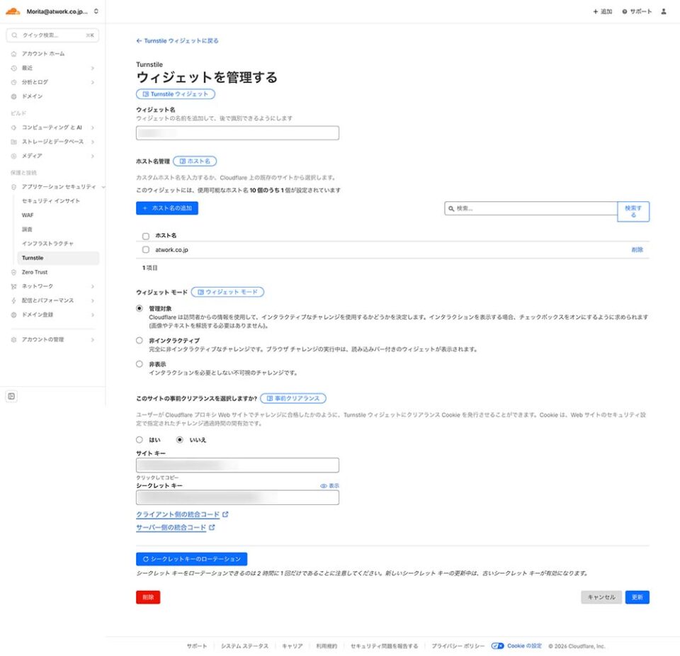 - CloudflareでTurnstileのSite Key/Secret Keyを発行